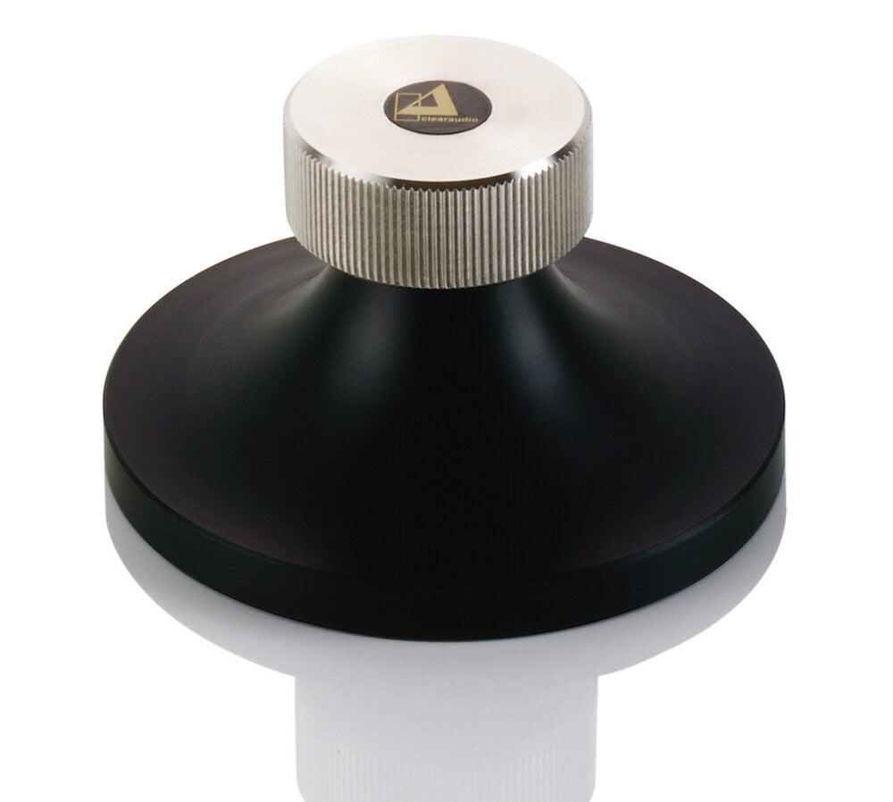 Eine Plattenklemme sorgt dafür, dass die Schallplatte optimal auf dem Plattenteller aufliegt, wodurch unerwünschte Resonanzen während des Abspielens effektiv minimiert werden. Sie bietet zudem Unterstützung bei leicht welligen oder konkaven/konvexen Schallplatten. Zwar gibt es günstigere Alternativen von anderen Herstellern, doch die hier vorgestellte Twister-Plattenklemme von Clearaudio überzeugt durch ihre hochwertige Verarbeitung und wird zudem in Deutschland gefertigt.
