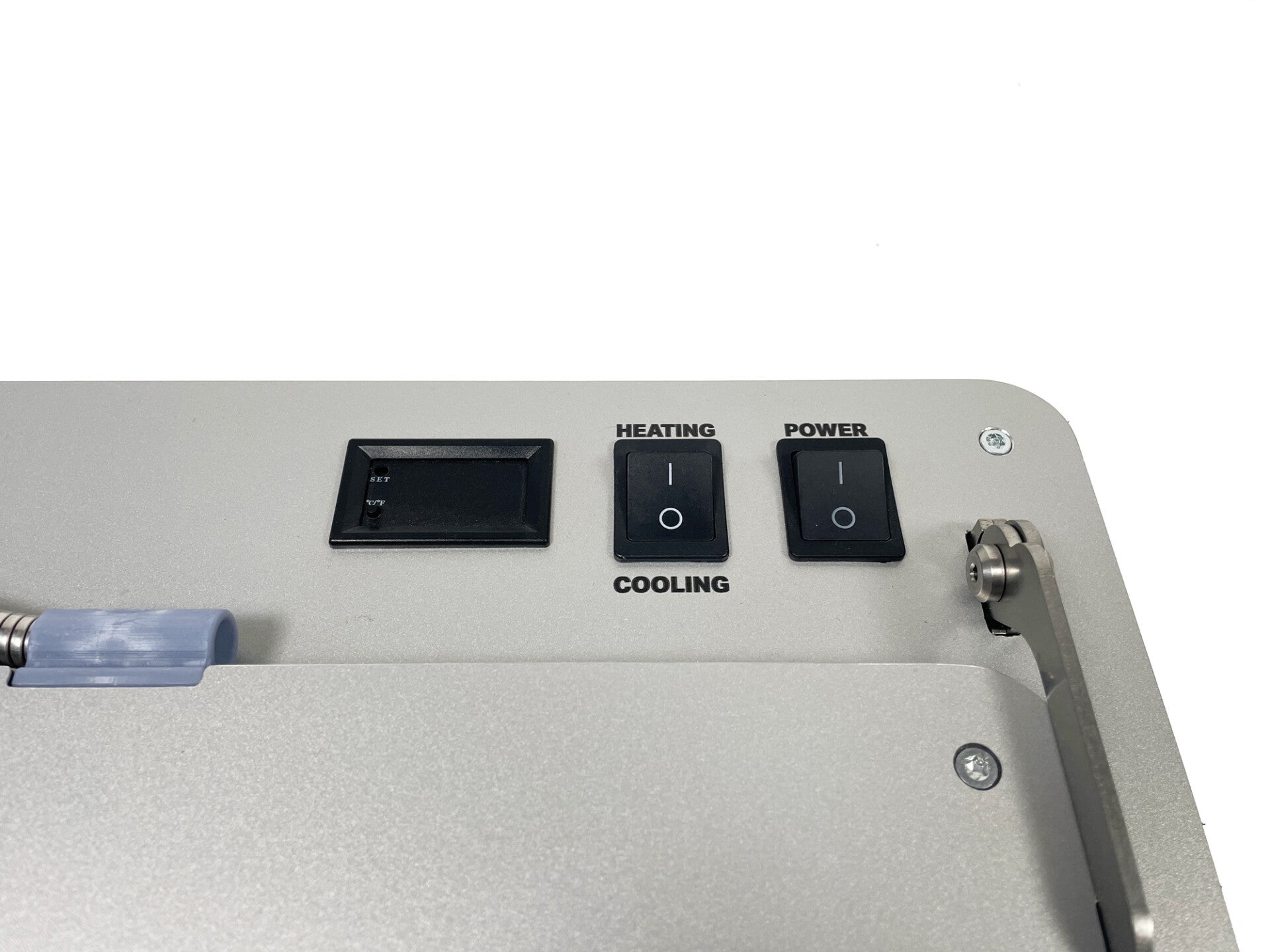 Mit dem "Heating-Kippschalter" beginnt der Heizvorgang, nachdem die Platte eingelegt wurde. Zusätzlich gibt es die Möglichkeit, mit einem kleinen Taster am Display zwischen Celsius und Fahrenheit umzuschalten. Sobald die Heizplatten eine Temperatur von 58°C erreicht haben, schaltet ein Relais hörbar ab. Sinkt die Temperatur unter 56°C, schaltet das Relais erneut ein. Die Temperatur pendelt während des Betriebs konstant zwischen diesen Werten, solange der "Heating-Schalter" eingeschaltet bleibt.